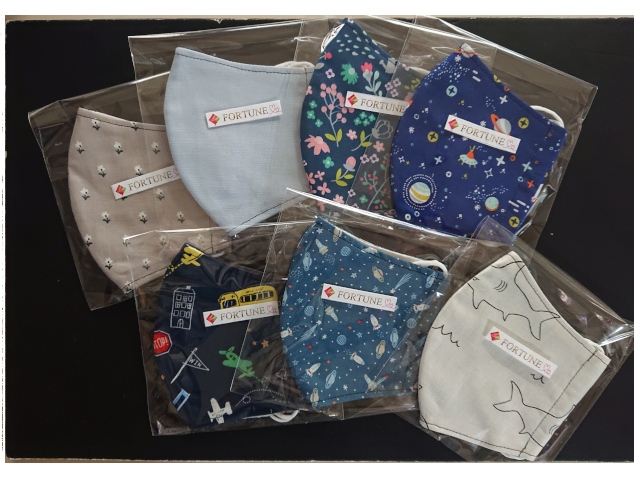 白や青を基調とした、夏向けマスクもご用意しました。内側には抗菌タイプのダブルガーゼを使用しています。