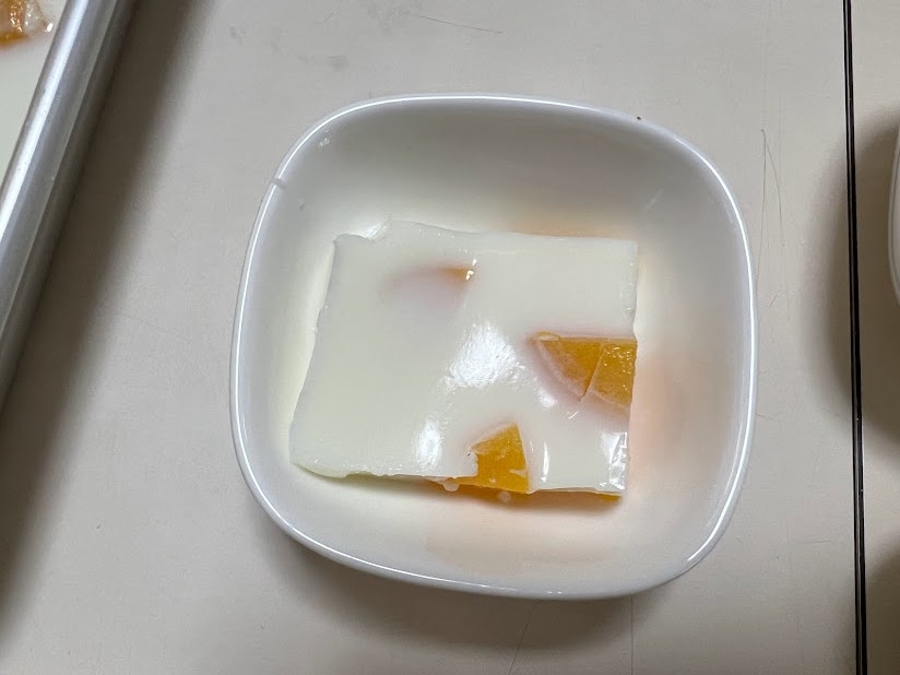 さっぱり食べられる、黄桃入りの牛乳寒天を作ってくれました。