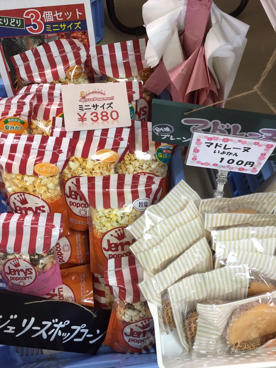 お惣菜、お菓子、野菜など、盛りだくさんで販売します。