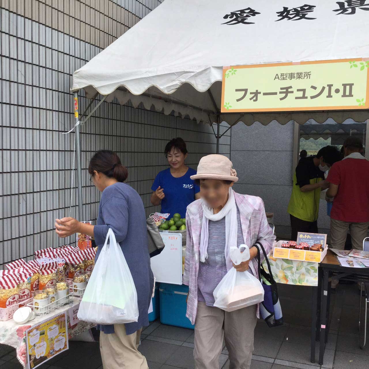 私たちフォーチュンではIT班や食品加工班の他に農業班もあり、いろいろな野菜などの作物を育てています。 安心安全な無農薬野菜の栽培販売を行っています。 また、各イベントではスイーツやお菓子・お漬物など、食品加工班で製造した販売しています。 今回は、「農林水産参加デー」に出店しました。 たくさんの方にお買い求めいただき、またご好評をいただきました。 ありがとうございました! もっと皆様に喜んでいただけるよう、がんばります!