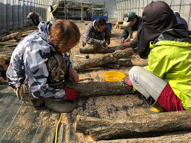 フォーチュンⅠ 農業班では、五明で野菜を栽培しています。 今回は、しいたけの栽培作業を行いました。 おいしいしいたけになることを祈りながら 手間ひまをかけてみんなで育てていきます。