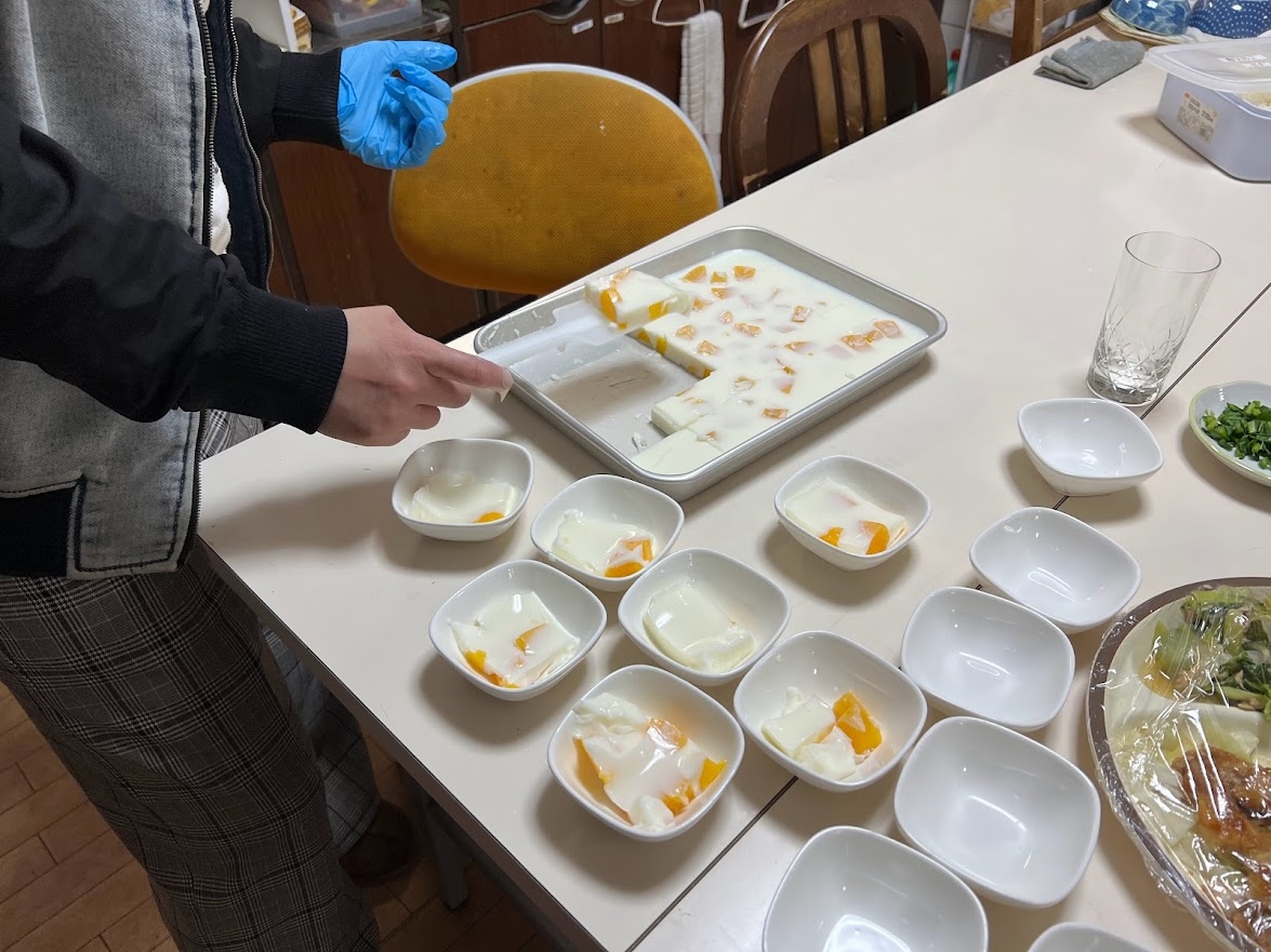 さっぱり食べられる、黄桃入りの牛乳寒天を作ってくれました。