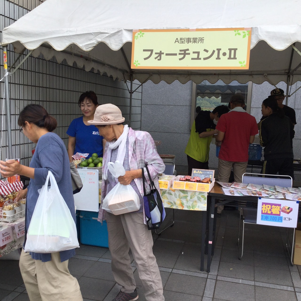 私たちフォーチュンではIT班や食品加工班の他に農業班もあり、いろいろな野菜などの作物を育てています。 安心安全な無農薬野菜の栽培販売を行っています。 また、各イベントではスイーツやお菓子・お漬物など、食品加工班で製造した販売しています。 今回は、「農林水産参加デー」に出店しました。 たくさんの方にお買い求めいただき、またご好評をいただきました。 ありがとうございました! もっと皆様に喜んでいただけるよう、がんばります!
