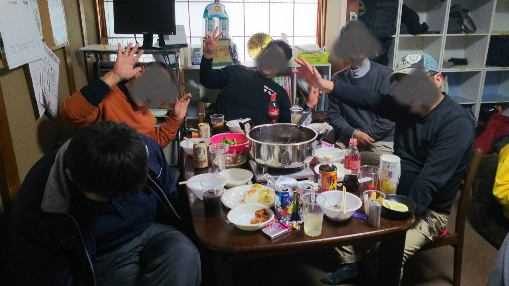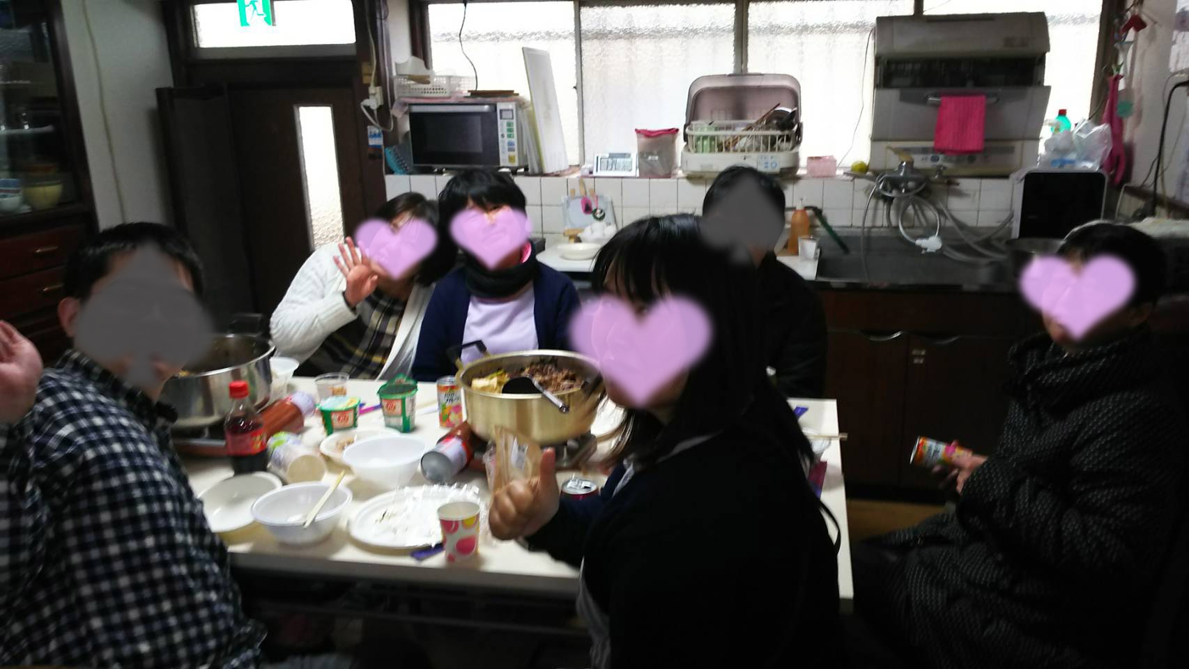 皆ですき焼きを囲み、